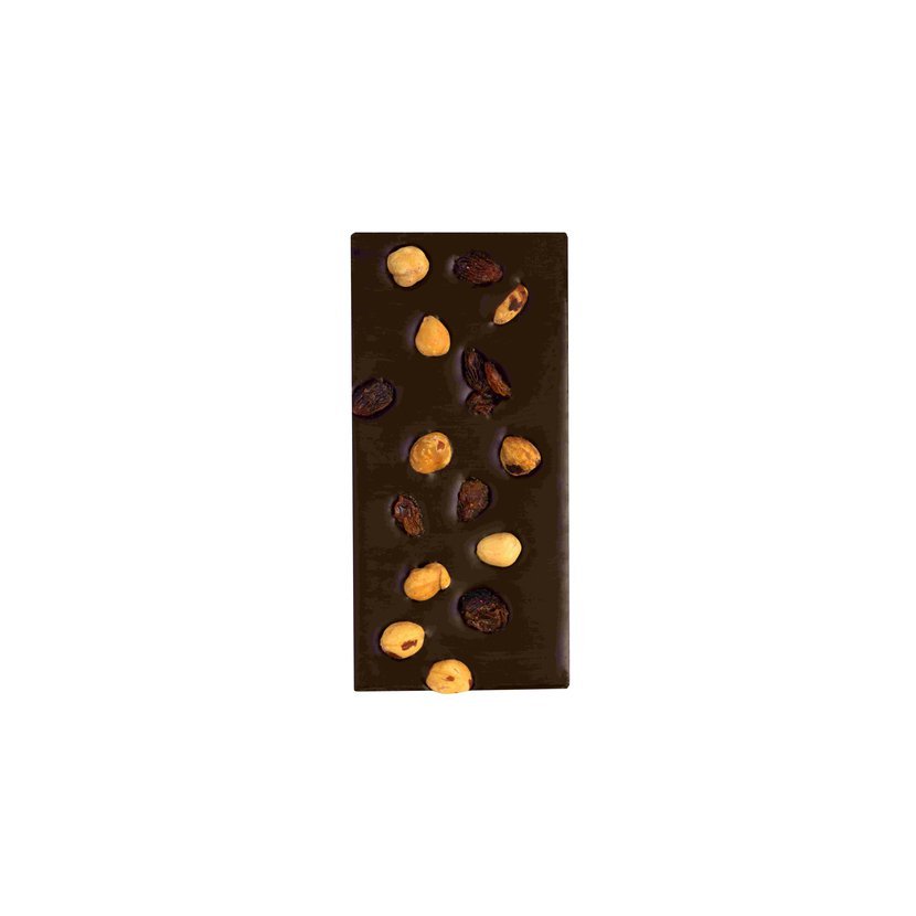 Vyrobená z tých najkvalitnejších kakaových bôbov criollo a trinitario z Južnej Ameriky. Ako jedna z mála čokolád na trhu neobsahuje sójový lecitín. Zvýšený obsah kakaovej sušiny podčiarkuje jej kvalitu a znižuje obsah cukru v tejto lahodnej čokoláde. Chuť je doplnená o lahodné čerstvo upražené lieskovce z Piemontu a šťavnaté hrozienka.